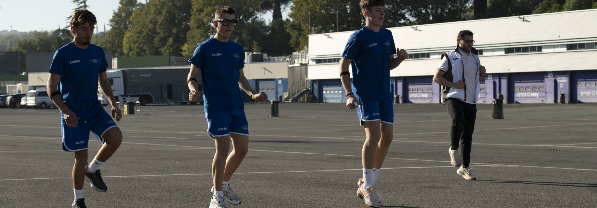 Sotto la guida dei preparatori atletici Gabriele Colucci e Matteo Palmerini, gli allievi si sono alternati in due gruppi: uno dedicato alla preparazione atletica specifica, l’altro a esercizi mentali sviluppati dall’azienda toscana, leader mondiale nella preparazione psicofisica per il motorsport. Il focus delle attività mentali è stato il concetto di “neural efficiency”, ossia la capacità di massimizzare il rendimento con il minimo consumo di risorse, mantenendo alte le prestazioni anche